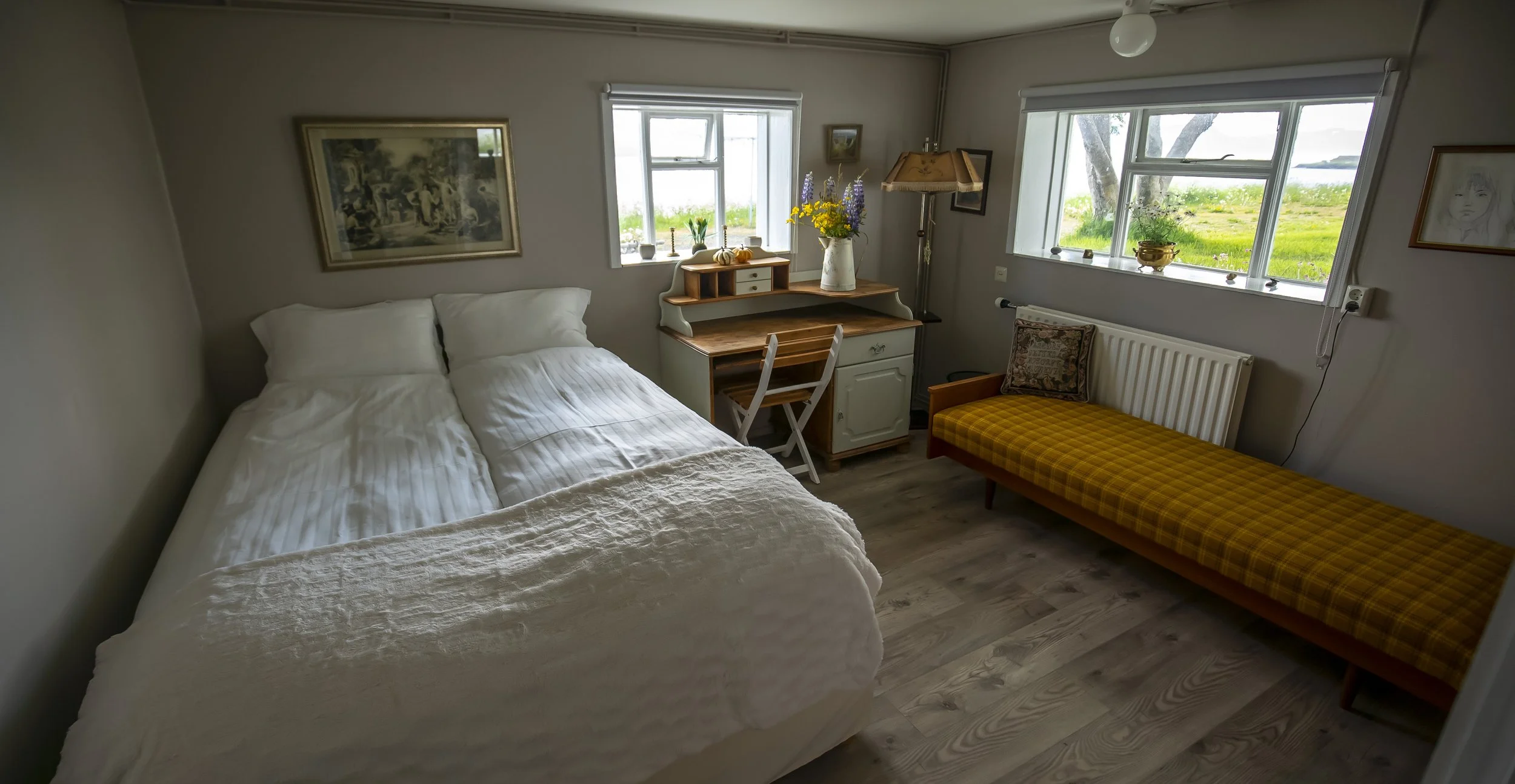 The farmhouse was bought in 2013 by Pétur Einarsson and Svanfríður Ingvadottir, who lovingly restored it and, since 2016, have welcomed intrepid travellers and artists seeking inspiration. They’ve kept the old soul of the farm alive by carefully upcycling and restoring, creating a space full of warmth, creativity, and connection.